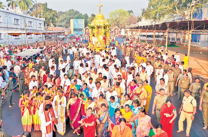 ఆరుద్రా నక్షత్రాన్ని పురస్కరించుకుని శ్రీస్వా మి అమ్మవార్లకు స్వర్ణోత్సవ కార్యక్రమాన్ని చేపట్టినట్లు ఆలయ ఈవో శ్రీనివాసరావు తెలిపారు. ప్రత్యేక పూజలు అనంతరం గంగాధర మండపం నుంచి నందిమండపం వరకు తిరిగి అక్కడి నుండి నంది మండపం వరకు ఈ రథోత్సవాన్ని జరిపించారు.