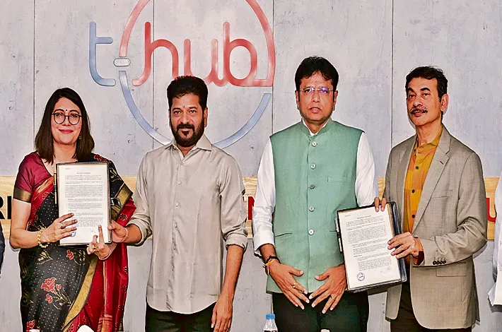 హైదరాబాద్లోని టీ హబ్లో గురువారం ఆయ న ఐటీ, పరిశ్రమలశాఖ మంత్రి శ్రీధర్బాబుతో కలిసి ఏఐ యాక్సిలేటర్ సెంటర్ ఏర్పాటుకు గూగుల్ డిజిటల్ ఇండియాతో ఎంవోయూ చేసుకుని సంతకా లు చేశారు. ఈ సందర్భంగా సీఎం మాట్లాడుతూ.. ఏఐ సాంకేతికతతో ప్రజలకు మెరుగైన పాలన అందించవచ్చ న్నారు.