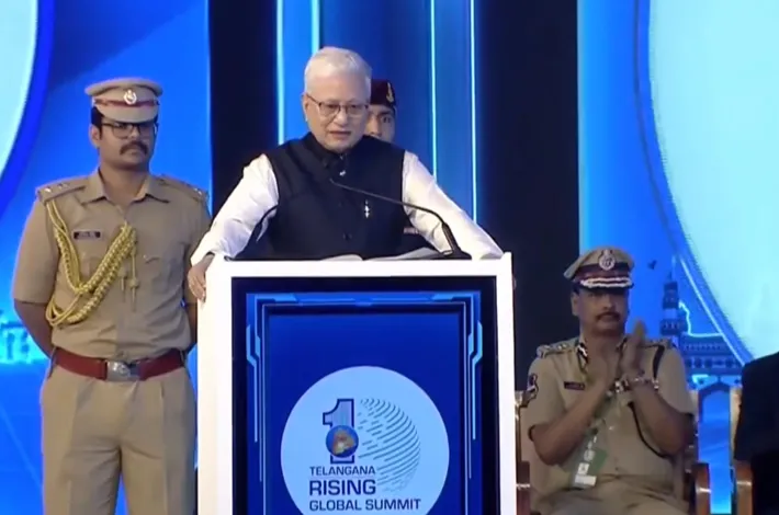హైదరాబాద్: రేవంత్ రెడ్డి(Revanth Reddy) నాయకత్వంలో తెలంగాణ అన్ని రంగాల్లో అభివృద్ధి చెందుతుందని గవర్నర్ జిష్ణుదేవ్ వర్మ(Governor Jishnu Dev Verma) అన్నారు. ఫ్యూచర్ సిటీలో తెలంగాణ రైజింగ్ గ్లోబల్ సమ్మిట్(Telangana Rising Global Summit)ను గవర్నర్ జిష్ణుదేవ్ వర్మ సోమవారం ప్రారంభించారు. గ్లోబల్ సమ్మిట్ కు హాజరైన గవర్నర్ కు ముఖ్యమంత్రి రేవంత్ రెడ్డి, మంత్రులు స్వాగతం పలికారు. ఈ సందర్భంగా గవర్నర్ మాట్లాడుతూ... గ్లోబల్ సమ్మిట్ను ప్రారంభించడం సంతోషంగా ఉందని పేర్కొన్నారు.