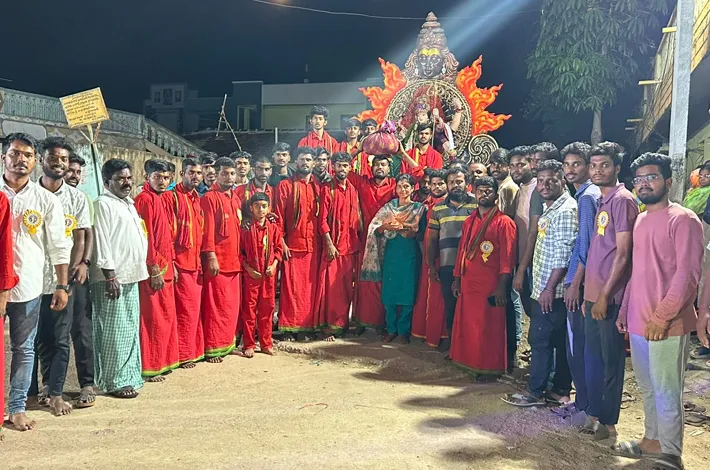 తాడ్వాయి (విజయక్రాంతి): కామారెడ్డి జిల్లా తాడ్వాయి మండలం బ్రాహ్మణపల్లి గ్రామంలో దుర్గామాత ఉత్సవాలు ఘనంగా నిర్వహించారు. గ్రామంలో శనివారం అత్యంత భక్తిశ్రద్ధలతో దుర్గామాత మాలలు ధరించిన భక్తులు ప్రత్యేక పూజలు నిర్వహించారు. దుర్గామాత 11 అవతారాలలో దర్శనమిచ్చి ఆనంద ఉత్సవాల్లో ముంచారు. దీపారాధన కార్యక్రమంలో చిన్నారి మితున దుర్గామాత వేషధారణలో అమ్మవారి రూపంలో దర్శనమిచ్చి ఆకట్టుకున్నారు. ఈ కార్యక్రమంలో గ్రామ పెద్దలు, యువకులు పాల్గొన్నారు.