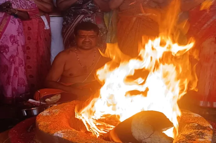 పాల్వంచ (విజయక్రాంతి): భద్రాద్రి కొత్తగూడెం జిల్లా పాల్వంచ మండల పరిధిలోని కేశవపురం జగన్నాధపురం గ్రామాల మధ్య వెలిసిన కనకదుర్గ దేవస్థానం పెద్దమ్మ గుడిలో పౌర్ణమి పురస్కరించుకొని బుధవారం దేవస్థాన ఆవరణలోని యాగశాలలో చండీ హోమం నిర్వహించారు. ముందుగా మేల తాళాలతో, వేదమంత్రాలతో అమ్మవారి ఉత్సవ విగ్రహములను దేవాలయం నుండి యాగశాలకు అర్చకులు తరలించారు. అనంతరం మండపారాధన, గణపతి పూజలు, చండీ హోమం, పూర్ణ హారతి కార్యక్రమం నిర్వహించారు. హోమంలో 15 మంది దంపతులు ఒక్కొక్కరు రూ.2516/- రుసుము చెల్లించి చండీ హోమంలో పాల్గొన్నారు. శేష వస్త్ర ప్రసాదం అమ్మవారి ప్రసాదం, భక్తులకు అన్నదాన వితరణ జరిపించారు. ఈ కార్యక్రమంలో అధిక సంఖ్యలో భక్తులు అర్చకులు, సిబ్బంది తదితరులు పాల్గొన్నారు.