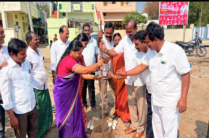 పెబ్బేరు పిబ్రవరి 19: పట్టణ కేంద్రంలోని 12వ వార్డులో పీర్ల చావిడి నిర్మాణం పనుల కోసం గురువారం మున్సిపల్ చైర్మన్ అక్కి శ్రీనివాస్ గౌడ్,కౌన్సలర్లు భూమి పూజ చే శారు. ఈ సందర్భంగా ఎస్ డి ఎఫ్ (SDF) నుంచి మంజూరైన రూ.7.50 లక్షల వ్య యంతో పీర్ల చావిడి నిర్మాణ పనులు ప్రా రంభించారు.
