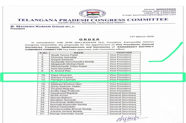 నాగిరెడ్డిపేట్,(విజయక్రాంతి): తెలంగాణ రాష్ట్ర కాంగ్రెస్ ప్రభుత్వం(Congress Govt) రాష్ట్రంలోని అన్ని జిల్లాలలో జిల్లా కార్యవర్గాన్ని పూర్తిగా ఏర్పాటు చేసినట్లు పిసిసి అధ్యక్షులు మహేష్ కుమార్ గౌడ్ ఆదేశాలు జారీ చేశారు.దాంట్లో భాగంగా కామారెడ్డి జిల్లా డిసిసి ఉపాధ్యక్షులుగా(DCC District Vice President) నాగిరెడ్డిపేట మండలంలోని వదలపర్తి గ్రామానికి చెందిన గుడిపల్లి రామచంద్రారెడ్డిని నియమిస్తూ ఉత్తర్వులు జారీ చేశారు.