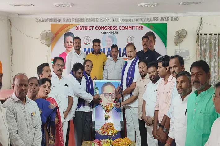 కరీంనగర్, నవంబరు 26 (విజయ క్రాంతి): భారత రాజ్యాంగ దినోత్సవాన్ని కరీంనగర్ జిల్లా కాంగ్రెస్ ఎస్.సి. సెల్ అధ్యక్షులు కొర్వి అరుణ్ కుమార్ ఆధ్వర్యంలో బుధవారం డీసీసీ కార్యాలయంలో ఘనంగా నిర్వహించారు. మాజీ నగర కాంగ్రెస్ అధ్యక్షులు, సుడా చైర్మన్ కోమటిరెడ్డి నరేందర్ రెడ్డి, మాజీ ఎమ్మెల్యేలు ఆరెపల్లి మోహన్, కోడూరు సత్యనారాయణ గౌడ్ హాజరై పలువురు నేతలతో కలిసి అంబేద్కర్ చిత్రపటానికి పూలమాలలు వేసి నివాళులు అర్పించినారు.