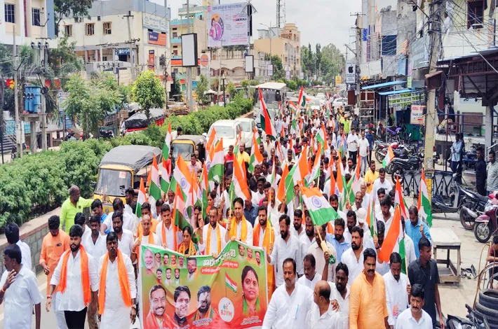 సంగారెడ్డి: పట్టణంలో భారతీయ జనతా పార్టీ యువ మోర్చా శాఖ ఆధ్వర్యంలో 'హార్ ఘర్ తిరంగ ర్యాలీ' ఆదివారం నిర్వహించారు. ఈ ర్యాలీలో రోహిత్ చాహల్, బీజేవైఎం జాతీయ ప్రధాన కార్యదర్శి మాధవనేని రఘు నందన్ రావు, మెదక్ పార్లమెంట్ సభ్యులు సెవెళ్ల మహేందర్, బీజేవైఎం రాష్ట్ర అధ్యక్షులు సంగారెడ్డి జిల్లా అధ్యక్షులు గోదావరి అంజిరెడ్డితో కలిసి ర్యాలీలో పాల్గొన్నారు. 'హార్ ఘర్ తిరంగ ర్యాలీ' సందర్భంగా నరేన్ దేశ్ పాండే వీరందరిని ఘన స్వాగతం పలికారు.