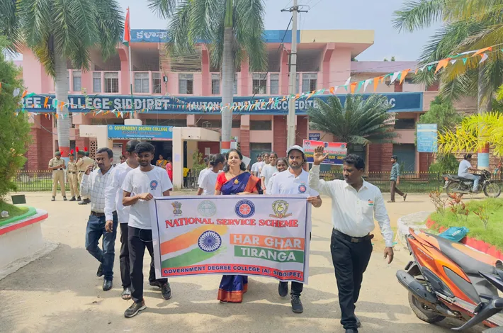 సిద్దిపేట (విజయక్రాంతి): సిద్దిపేట ప్రభుత్వ డిగ్రీ కళాశాల (స్వయం ప్రతిపత్తి) స్వాతంత్య్ర దినోత్సవ వేడుకలు ఘనంగా జరిగాయి. ఎన్.ఎస్.ఎస్ వాలంటీర్లు ఎన్సిసి క్యాడేట్లు కళాశాలలో పేరెడ్ నిర్వహించారు. హర్గర్ తిరంగా కార్యక్రమంలో భాగంగా కళాశాల ఎన్.ఎస్.ఎస్ వాలంటీర్లు ప్రత్యేకంగా పరేడ్ ద్వారా దేశ సేవను చాటిచెప్పే నినాదాలతో ర్యాలీ నిర్వహించారు. ఈ సందర్భంగా కళాశాల ప్రిన్సిపాల్ డా. జి. సునీత మాట్లాడుతూ.. ఈ ప్రతిష్టత్మక కళాశాల అనేక మేధావులను తయారు చేసిందని, విద్యార్థులు విద్యతో పాటు సేవా తత్పరతను అలవరుచుకున్నపుడే ఉత్తమ పౌరులుగా ఎదుగు తారని తెలిపారు. విద్యార్థుల పరేడ్, ర్యాలీ అభినందనీయమని కొనియాడారు. ఈ కార్యక్రమంలో కళాశాల అధ్యాపకులు డాక్టర్ కే.భవాని ఎన్.ఎస్.ఎస్ ప్రోగ్రాం అధికారులు డా.ఎం శ్రద్ధానందం, డా మధసూదన్, బి.కృష్ణయ్య, డా. కే రాణి, కే విశ్వనాథ్, డా.ఎస్. పుణ్యమ్మ, బి. బాలకిషన్ పాల్గొన్నారు.