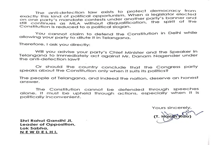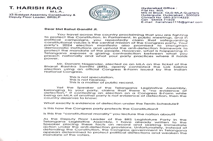 రాహుల్ గాంధీకి హరీశ్ రావు లేఖ