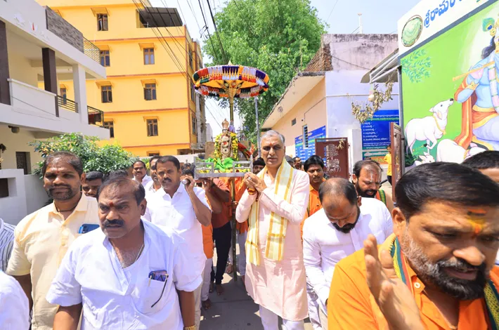 ఈ సందర్భంగా హరీశ్ రావు మాట్లాడుతూ... ఆంజనేయ స్వామి సీతా దేవిని శ్రీరామచంద్ర స్వామికి అప్పిగించిన సందర్బంగా హనుమాన్ సేవలు అమోఘమని శ్రీ రాముడు ఆంజనేయున్ని మేచ్చుకొని సన్మానం చేసిన రోజు హనుమాన్ విజయోత్సవం అని అన్నారు. హనుమాన్ సర్వ జగత్ రక్షకుడన్నారని పేర్కొన్నారు. హనుమాన్ స్వామి అనుగ్రహంతో అన్నింటా శుభం కలగాలని కోరుకున్నారు. హనుమాన్ విజయోత్సవ వేడుకల్లో భాగంగా బిక్షా కార్యక్రమంలో హనుమాన్ మాలధారణ స్వాములతో కలసి పాల్గొన్నారు.