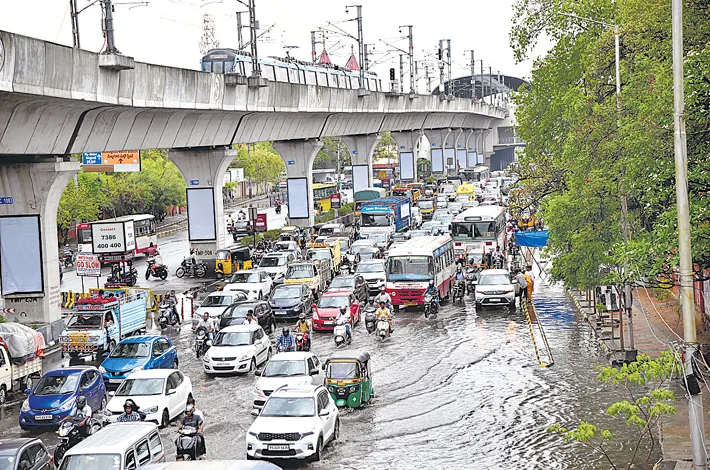 హైదరాబాద్ సిటీబ్యూరో/ఎల్బీనగర్, మే 18 (విజయక్రాంతి): గ్రేటర్ హైదరాబాద్ ప్రజలను కొద్ది రోజులుగా వర్షం వెంటాడుతోంది. ఉదయం అంతా సాధారణ వాతావరణం ఉండి, సాయంత్రం వేళ మాత్రం భారీ వర్షం కురుస్తుంది. దీంతో వాహనదారులు, ప్రజలు తీవ్ర ఇబ్బందులకు గురవుతున్నారు. అకస్మాత్తుగా వర్షం రావడం రావడమే దంచికొడు తుండటంతో నగరంలోని పలు ప్రాంతాలలో భారీగా వర్షపాతం నమోదవుతోంది. ఈ సమయంలో మోకాళ్ల లోతు వరద నీరు చేరడంతో రహదారులు చెరువులను తలపిస్తున్నాయి.