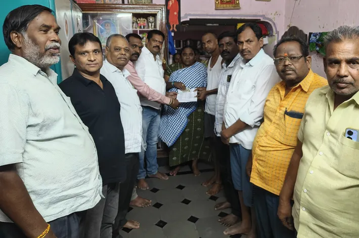 హుజురాబాద్ (విజయక్రాంతి): కరీంనగర్ జిల్లా హుజరాబాద్ పట్టణంలో గత కొద్ది రోజుల క్రితం మాడ మహేందర్ అనే నిరుపేద వైశ్యుడు మృతి చెందాడు. వారి ఆర్థిక పరిస్థితిని చూసి మున్సిపల్ చైర్ పర్సన్ గందె రాధికా శ్రీనివాస్ సూచన మేరకు ఆర్యవైశ్య సంఘ పట్టణ అధ్యక్షుడు సుద్దాల హరిశంకర్, సోమవారం కార్యవర్గ సభ్యులు దాతల సహకారంతో దహన సంస్కారాలు, వారి పోషణ కొరకు 1 లక్ష 18 వేల రూపాయలను విరాళాలుగా సేకరించి వారి కుటుంబానికి సహాయ సహకారాలు అందించారు. మాడ మహేందర్ కుటుంబ సభ్యులు చైర్మన్ గందే రాధికా-శ్రీనివాస్, ఆర్య వైశ్య సంఘానికి కృతజ్ఞతలు తెలిపారు. ఈ కార్యక్రమంలో సంఘం పెద్దలు కోశాధికారి రేణికుంట్ల సురేష్, పాల కృష్ణ మూర్తి, చందా విద్యాసాగర్, భూపతి లచ్చన్న, ఐత సురేందర్, అప్పన రమేష్, చందా నగేష్ తదితరులు పాల్గొన్నారు.