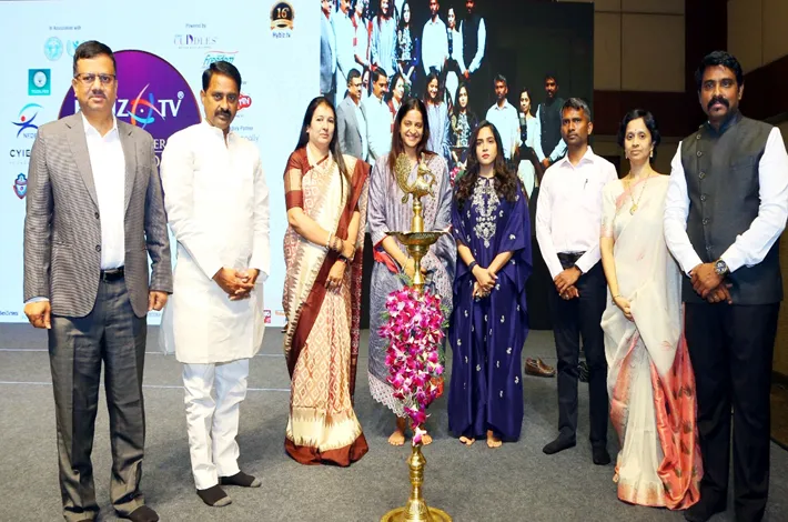 హైదరాబాద్, మార్చి 8 (విజయక్రాంతి): అంతర్జాతీయ మహిళా దినోత్సవాన్ని పురస్కరించుకుని హైబిజ్ టీవీ నిర్వహించిన 7వ ఎడిషన్ ఉమెన్స్ లీడర్షిప్ అవార్డుల ప్రదానోత్సవం హైదరాబాద్లోని హెచ్ఐసీసీ నో వాటెల్లో ఘనంగా జరిగింది. ఏడో ఏడాది నిర్వహిస్తున్న ఈ ప్రతిష్టాత్మక కార్యక్రమంలో వివిధ రంగాల్లో ప్రతిభ కనబరిచిన 60 మందికి పైగా మహిళలను సత్కరించారు. టూరిజం డెవలప్మెంట్ కార్పొరేషన్ చైర్మన్ పటే ల్ రమేష్ రెడ్డి ముఖ్య అతిథిగా హాజరయ్యారు.