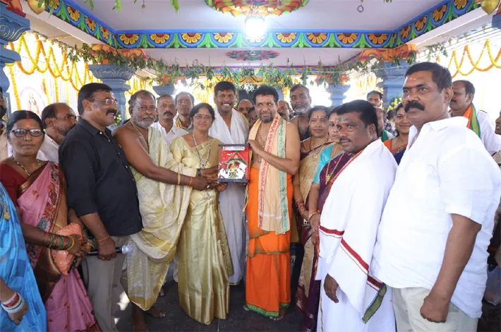 సుల్తానాబాద్ నవంబర్ 26 (విజయక్రాంతి):పెద్దపల్లి జిల్లా సుల్తానాబాద్ పట్టణంలోని శాస్త్రి నగర్ లో బుధవారం జరిగిన శ్రీశ్రీశ్రీ అయ్యప్ప స్వామి విగ్రహ ప్రతిష్టాపన వేడుకల్లో పాల్గొన్న ఆల్ ఫోర్స్ విద్యాసంస్థల అధినేత వి, నరేందర్ రెడ్డి ని ఆలయ ట్రస్ట్ వ్యవస్థాపకులు, చైర్మన్ సాయిరి పద్మ మహేందర్ దంపతులు మెమొంటో అందజేసి, శాలువా కప్పి ఘనంగా సన్మానించారు... ఈ సందర్భంగా నరేందర్ రెడ్డి మాట్లాడుతూ అతి తక్కువ సమయంలో ఆలయం నిర్మించిన సాయిరీ పద్మ మహేందర్ దంపతులను అభినందించారు...అంతకు ముందు నరేందర్ రెడ్డి అయ్యప్ప స్వామిని దర్శించుకున్నారు... నరేందర్ రెడ్డి వెంట పలువురు ఉన్నారు....