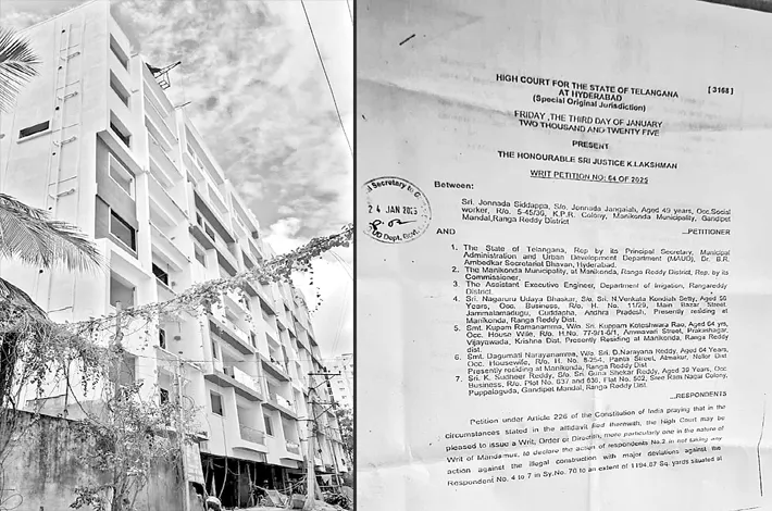 స్పందించిన టౌన్ ప్లానిం గ్, నీటిపారుదల శాఖ అధికారులు క్షేత్రస్థాయిలో పరిశీలించి, నిర్మాణాన్ని తక్షణం ఆపివేయాలని నోటీసులు జారీ చేశారు. అయినా ఆ ఆదేశాలను పెడచెవిన పెట్టి పనులు యథావిధిగా కొనసాగిస్తున్నారు. ఈ అక్రమ నిర్మా ణం వెనుక ఒక ప్రముఖ హీరో పేరు ఉన్నట్లు ఆరోపణలు బలంగా వినిపిస్తున్నాయి. ఆయన పేరును అడ్డుపెట్టుకొని ఈ భారీ కట్టడాన్ని నిర్మిస్తున్నట్లు ము న్సిపల్ కౌన్సిల్ సభ్యులే ఆరోపిస్తున్నారు. ఈ వ్యవహారంపై కొందరు సభ్యులు ఇప్పటికే హైకోర్టును ఆశ్రయించి న్యాయస్థానంలో కేసు దాఖలు కావడం అంశం తీవ్రతను తెలియజేస్తోంది.