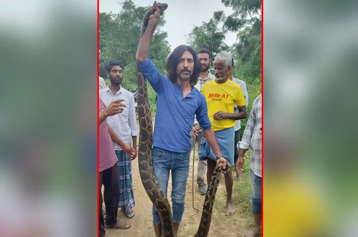లక్షెట్టిపేట (విజయక్రాంతి): మండలంలోని తిమ్మాపూర్ గ్రామంలో సోమవారం పది అడుగుల కొండచిలువ కలకలం సృష్టించింది. గ్రామంలోని డంపింగ్ యార్డ్ వద్ద కొండచిలువ వుందని స్థానికులు ఇచ్చిన సమాచారం మేరకు లక్షెట్టిపేట అటవీ శాఖ పరిధిలోని పెద్దంపేట సెక్షన్ అధికారి అల్తాఫ్ హుస్సేన్, బీట్ అధికారి రాజశేఖర్, చంద్ర శేఖర్, ముజ్జు, స్నేక్ క్యాచర్ అబ్బుషెక్ వెళ్ళి కొండచిలువను రెస్క్యూ చేసి చెల్లంపేట అటవీ ప్రాంతంలో వదిలి పెట్టడం జరిగిందని తెలిపారు.