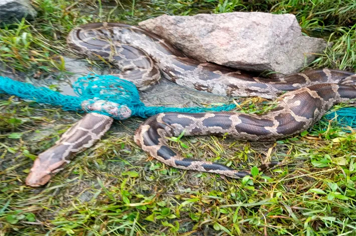 సుల్తానాబాద్, నవంబర్ 3 (విజయ క్రాంతి):పెద్దపల్లి జిల్లా సుల్తానాబాద్ ఊర చెరువు వద్ద చేపల వలకు పెద్ద కొండచిలువ చిక్కింది.. చెరువు వద్ద మత్స్యకారులు చే పలు తరలిపోకుండా కొద్ది రోజుల క్రితం పెద్ద జాలివల ఏర్పాటు చేశారు... సోమవారం ఆ జాలి వాల వద్ద చిక్కుకొని ఉన్న పెద్ద కొండ చిలువను చూసిన స్థానికులు , రైతులు భయపడ్డారు.. ఈ సంఘటన సుల్తానాబాద్ లో కలకలం సృష్టించింది...