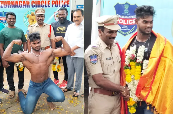 హుజూర్ నగర్,(విజయక్రాంతి): హుజూర్ నగర్ కు చెందిన రాజు సంజయ్ విజయనగరంలో నిర్వహించిన మిస్టర్ ఆంధ్ర ప్రదేశ్ బాడీ బిల్డింగ్ విభాగం నందు గోల్డ్ మెడల్ సాధించాడు. రాజు సంజయ్ ని హుజూర్నగర్ సర్కిల్ ఇన్స్పెక్టర్ జి చరమందరాజు, కౌన్సిలర్ కష్టాల శ్రవణ్ కుమార్, మంజు నాయకులు సన్మానించారు. సీఐ జి చరమందరాజు మాట్లాడుతూ... యువత ఆదర్శంగా తీసుకొని వ్యాయామం చేయాలని, తగిన ఆరోగ్య సూత్రాలను పాటిస్తూ పోటీ పరీక్షలలో రాణించాలని సూచించారు. 15 సంవత్సరాల క్రితం తమిళనాడులోని మదురై జిల్లా మదిప్పనూరు నుండి హుజూర్నగర్ కు వచ్చి సీతారాం నగర్ కాలనీలో స్థిరపడిన రాజు కుమార్ , రాజు జయ అను వారు స్వీట్ వస్తువుల వ్యాపారం చేసుకుంటూ తన కొడుకును డిగ్రీ చదివిస్తూ వ్యాయామం జిమ్ నేర్పించి అతడిని ప్రయోజకుడిని చేయాలనే పట్టుదలతో తన కొడుకు కు వ్యాయామం నేర్పించి నారు. కొడుకు బాడీ బిల్డింగ్ లో మంచి పథకాలు తేవడంతో తల్లిదండ్రులు ఆనందం వ్యక్తం చేశారు. ఇట్టి కార్యక్రమంలో బాడీ బిల్డర్ సంజయ్ గురువు షేక్ మస్తాన్ ,జిమ్ ట్రైనర్ నెమ్మా ది రవి . హుజూర్ నగర్ పట్టణానికి చెందిన ఉదారి శ్రీను .శ్రీధర్. అజయ్ ,అంజి ,జగన్, రాంబాబు ,రాజు సునీల్ యాకోబ్ ,విజయ్ ,రఘు వెంకటేష్ తదితరులు పాల్గొన్నారు.