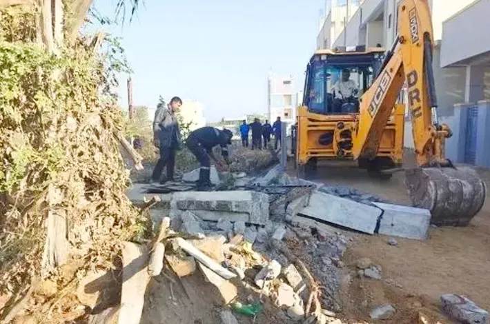 హైదరాబాద్,(విజయక్రాంతి): రంగారెడ్డి జిల్లాలోని శంషాబాద్లో రెండు ఆక్రమ నిర్మాణాలను హైడ్రా (Hyderabad Metropolitan Development Authority) కూల్చివేత డ్రైవ్లను నిర్వహించింది. సదరన్ ప్యారడైజ్ (శ్రీ సంపత్ నగర్)లో 998 చదరపు గజాల పార్కును అక్రమంగా ఆక్రమించారని స్థానికులు హైడ్రాకు ఫిర్యాదు చేశారు. దీంతో రంగంలోకి దిగ్గని స్థానికుల ఫిర్యాదు ప్రకారం పార్క్ స్థలని ఆక్రమించారని నిర్ధరించుకున్న తర్వతే చర్య తీసుకుంది. పార్క్ భూమిలో నిర్మించిన కంచె, షెడ్ను హైడ్రా సిబ్బంది తొలగించారు. అలాగే ఊట్పల్లి గ్రామంలోని కెప్టెన్-2 కాలనీలో 33 అడుగుల రోడ్డును ఆక్రమించి గోడ నిర్మించినట్లు మరొక ఫిర్యాదు అందింది. దర్యాప్తు అనంతరం హైడ్రా ఆక్రమణ గోడను కూల్చివేసింది. రెండు కూల్చివేతలను సోమవారం నిర్వహించారు.