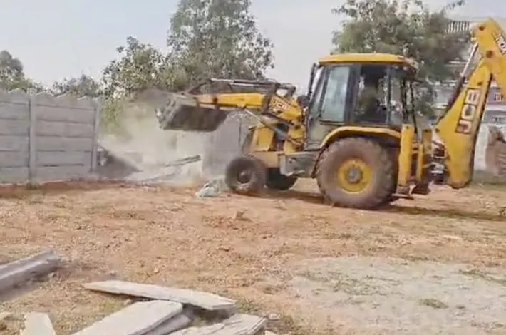 ఘట్ కేసర్ (విజయక్రాంతి): గ్రేటర్ హైదరాబాద్ ఎల్బీనగర్ జోన్ పోచారం సర్కిల్ పరిధిలోని కొర్రెములలో పార్కు స్థలం కబ్జా చేసి నిర్మించిన ప్రహరీ గోడను సోమవారం హైడ్రా అధికారులు కూల్చి వేశారు. సర్వే నెంబర్ 747, 750లో ఉన్న 1034 గజాల పార్కు స్థలాన్ని కబ్జా చేసి ప్రహారీ నిర్మించగా గతంలో హైడ్రాధికారులు కూల్చివేశారు. అయినప్పటికీ మరోసారి కబ్జాదారులు మళ్లీ నిర్మాణాలు చేపట్టారు. దీంతో స్థానికులు హైడ్రా అధికారులకు ఫిర్యాదు చేశారు. స్థానికుల ఫిర్యాదు మేరకు హైడ్రా అధికారులు మరోసారి కూల్చివేతలు చేపట్టారు. లేఅవుట్ లలో పార్కు స్థలాలు, ప్రభుత్వ భూములను కబ్జా చేసి అక్రమ నిర్మాణాలు చేపడితే క్రిమినల్ కేసులు నమోదు చేస్తామని హైడ్రా అధికారులు హెచ్చరించారు.