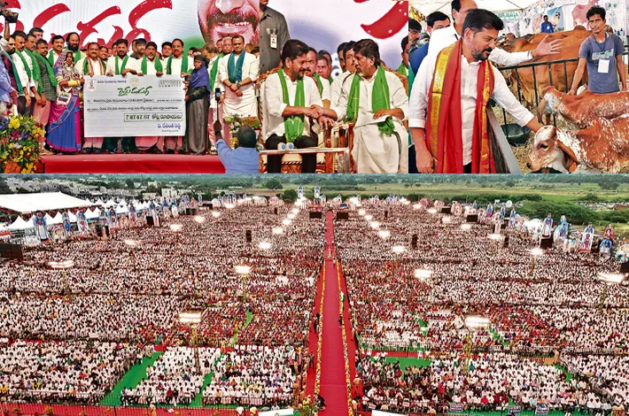 వేదికపై సీఎం గత బీఆర్ఎస్ ప్రభుత్వాన్ని, మాజీ సీఎం కేసీఆర్పై విమర్శల వాన కురిపిస్తుంటే.. వేదిక దిగువన ఉన్న రైతులు చప్పట్లతో మద్దతు తెలిపారు. గత ప్రభుత్వ వైఫల్యాలు, కాళేశ్వరం ప్రాజెక్టు లోపాలు, అవినీతిపై సీఎం రేవంత్రెడ్డి తనదైన శైలిలో విమర్శలు, ఆరోపణలు చేస్తుండగా.. ప్రజలు కరతాళ ధ్వనులతో స్పందన తెలిపారు.