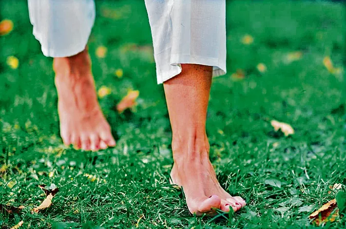 బయటకు వాకింగ్ కోసం వెళ్లామంటే తప్పని సరిగా షూ వేసుకుని వెళ్తాం. అలా పార్కుల్లోని వాకింగ్ ట్రాకుల్లో కొన్ని రౌండ్లు నడిచి ఇంటికి వచ్చేస్తాం. అయితే షూ, చెప్పులు తీసేసి గడ్డిమీద 20 నిమిషాలు నడిస్తే ఎంతో మంచిదని పలు అధ్యయనాలు చెబుతున్నాయి.