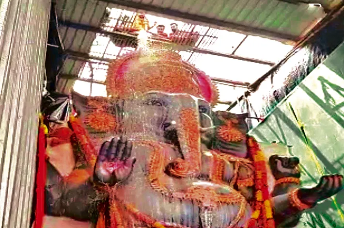 హనుమకొండ, సెప్టెంబర్ 22 (విజయక్రాంతి): వరంగల్ ఎల్లంబజార్లో కొలువైన 40 అడుగుల మట్టి గణపతికి పదిహేను రో జుల అనంతరం నిర్వాహకులు ఆదివారం ఘనంగా నిమజ్జనం కార్యక్రమం నిర్వహించారు. 15 రోజుల అనంతరం అక్కడే గణప య్యకు ఫైర్ ఇంజన్ల సాయంతో పాలతో అభిషేకం చేసి నిమజ్జనం చేశారు. వేడుకను తిలకించేందుకు పెద్ద సంఖ్యలో భక్తులు తరలివచ్చారు. గణేష్ నిమజ్జనం సందర్భంగా మండపంలో ఏర్పాటు చేసిన లడ్డూకు వేలం నిర్వహించగా రూ.2.22లక్షలకు స్థానిక వ్యాపారి దక్కించుకోవడం విశేషం.