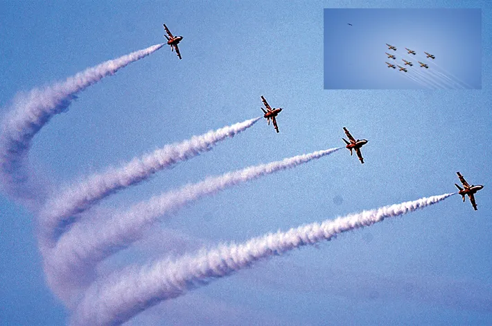 హైదరాబాద్ సిటీబ్యూరో, డిసెంబర్ 6 (విజయక్రాంతి): ప్రజాపాలన విజయోత్సవాల్లో భాగంగా ఈనెల 8న హుస్సేన్సాగర్ వద్ద నిర్వహించనున్న ఏయిర్ షోకు సంబంధించి శుక్రవారం సాయంత్రం ఏయిర్ ఫోర్స్ సిబ్బంది నిర్వహించిన రిహార్సల్స్ నగర ప్రజలను కనువిందు చేశాయి. మొత్తం 9 విమానాలతో చేపట్టిన ఈ రిహార్సల్స్.. ట్యాంక్బండ్, నెక్లెస్రోడ్డు, లిబర్టీ, సచివాలయం, ఎన్టీఆర్ మార్గ్ తదితర ప్రాంతాల మీదుగా కొనసాగాయి. విమనాలు ఒకే లేన్లో వెళ్లడం, వెనుకాల పొగతో కూడిన రహదారి వేసినట్టుగా ఉండటం నగరవాసులను కనువిందు చేసింది. దీంతో ఆదివారం నిర్వహించనున్న ప్రదర్శనపై నగర ప్రజల్లో విపరీతమైన హైప్ నెలకొంది.