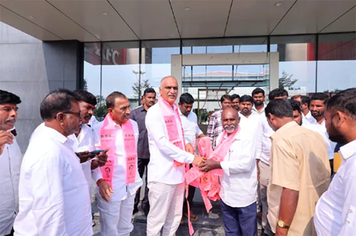 కండువాలు కప్పి పార్టీలోకి ఆహ్వానించిన మాజీమంత్రి హరీష్ రావు
