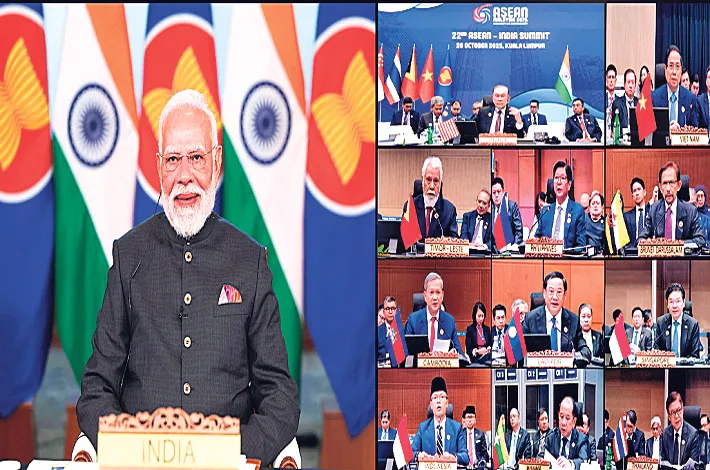 న్యూఢిల్లీ, అక్టోబర్ 26: ప్రపంచంలోని ఎన్నో దేశాల్లో ప్రస్తుతం అనిశ్చితి ఉన్నప్పటికీ వ్యూహాత్మక భాగస్వామ్యంతో భారత్ ఆగ్నేయాసియా దేశాలు స్థిరమైన పురోగతిని సాధిస్తున్నాయని ప్రధాన మంత్రి నరేంద్ర మోదీ కొనియాడారు. మలేషియా రాజధా ని కౌలాలంపూర్ వేదికగా ఆదివారం నిర్వహించిన ‘22వ భారత్ అసోసియేషన్ ఆఫ్ సౌత్ ఈస్ట్ ఏషియన్ నేషన్స్ (ఆసియాన్) -సదస్సులో ఆయన వర్చువల్గా పాల్గొని మాట్లాడారు.