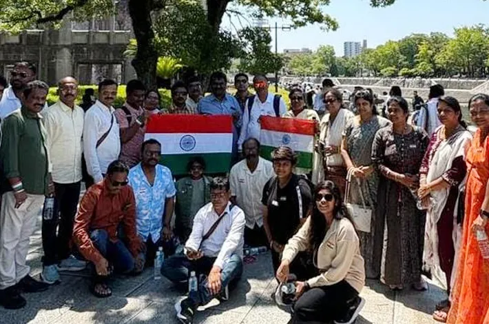 గజ్వేల్: జపాన్ లోని హిరోషిమాలో గజ్వేల్ కు చెందిన స్టార్ హెల్త్ ఇన్సూరెన్స్ ఏజెంట్ గుడాల రాధాకృష్ణ బృందం గురువారం భారత స్వాతంత్ర వేడుకలను జరుపుకున్నారు. స్టార్ హెల్త్ సంస్థ ద్వారా జపాన్ లో సీఈవో క్లబ్ అవార్డు అందుకోవాడనికి భారతదేశం వివిధ రాష్ట్రాల నుండి స్టార్ హెల్త్ ఇన్సూరెన్స్ అడ్వైజర్స్ వెళ్లారు. 15th ఆగస్టున హిరోషిమాలో స్వాతంత్య్ర దినోత్సవ సంబరాలను భారతదేశ జాతీయ జెండా ఎగురవేసి జాతీయ గీతాన్ని ఆలపించి , స్వీట్స్ పంచి ఘనంగా వేడుకలు జరుపుకున్నారు. ఈ జెండా పండుగలో గుడాల రాధాక్రష్ణ, వెంకటేష్, పివి ప్రసాద్, దుర్గాప్రసాద్, జానకి రామ్, సూర్యనారాయణ రాజు, సుధాకర్ రెడ్డి, స్వామి, వినయ్,కిషోర్ రెడ్డి, రమాకాంత్ పాల్గొన్నారు. గత ఏడాది రాధాకృష్ణ బృందం దక్షిణాఫ్రికాలో కూడా స్వాతంత్ర దినోత్సవ సంబరాలను జరుపుకున్నారు.