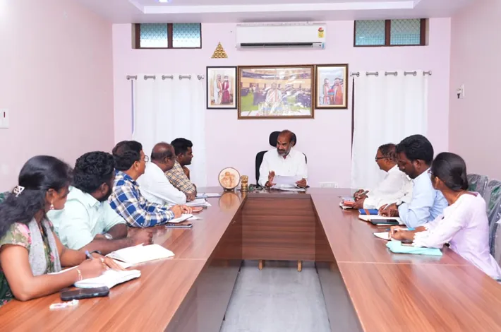 వేములవాడ (విజయక్రాంతి): ఇందిరమ్మ ఇల్లు పేద ప్రజల ఆత్మ గౌరవానికి ప్రతీక అని రాష్ట్ర ప్రభుత్వ విప్ ఆది శ్రీనివాస్ అన్నారు. వేములవాడ పట్టణంలోని బస్ డిపో వద్ద గల 144 ఇందిరమ్మ ఇండ్ల నిర్మాణాలపై రాష్ట్ర ప్రభుత్వ విప్ ఆది శ్రీనివాస్ గురువారం ఎమ్మెల్యే క్యాంపు కార్యాలయంలో గృహ నిర్మాణ ఆర్ అండ్ బి మున్సిపల్ అధికారులతో సమీక్షా సమావేశం నిర్వహించారు. మాట్లాడుతూ.. నియోజకవర్గ పరిధిలో ఇందిరమ్మ ఇండ్లు నిర్మాణ దశలో ఉన్నాయని అన్నారు. రాష్ట్రంలోని నిరుపేదలు, గూడు లేనివారు ఆత్మగౌరవంతో బతకాలనే ఆలోచనతో ప్రభుత్వం ఇందిరమ్మ ఇళ్లు నిర్మించాలని నిర్ణయించిందనీ తెలిపారు.