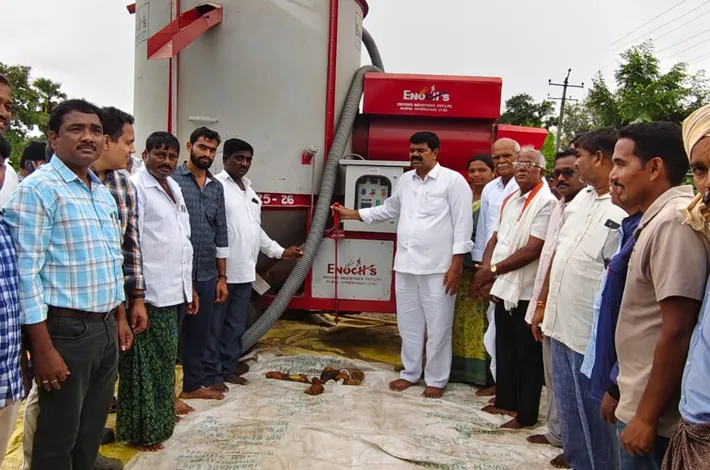- రైతులతో కలిసి ధాన్యం ఆరబోత యంత్రం ప్రారంభోత్సవం చేసిన ఎమ్మెల్యే.