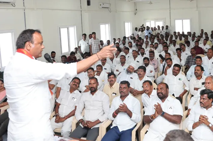 మునుగోడు (విజయక్రాంతి): కాంగ్రెస్ పార్టీ పేరు చెప్పి ఎక్కడ చెయ్యి చాప లేదు కష్టకాలంలో కమిట్మెంట్తో కాంగ్రెస్ పార్టీ జెండాను ఆస్తులు అమ్ముకొని బతికించే విధంగా పనిచేసిన మునుగోడు ఎమ్మెల్యే కోమటిరెడ్డి రాజగోపాల్ రెడ్డి అన్నారు. సంఘటన సృజన్ అభియాన్ లో భాగంగా డిసిసి అధ్యక్షుని ఎంపిక కొరకు నియోజకవర్గంలోని ముఖ్య నాయకుల అభిప్రాయం తీసుకోవడానికి గురువారం మునుగోడు కు ఎఐసిసి మాజీ జనరల్ సెక్రటరీ బిశ్వరంజన్ మహంతితో పిసిసి పరిశీలకులు మునుగోడు లోని క్యాంప్ కార్యాలయంలో హాజరై ముఖ్య కార్యకర్తలు నాయకులతో డిసిసి అధ్యక్షుని ఎంపికకు సంబంధించి అభిప్రాయాన్ని తీసుకొని మాట్లాడారు.