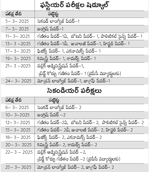 - షెడ్యూల్ ప్రకటించిన రాష్ట్ర ఇంటర్మీడియట్ బోర్డు