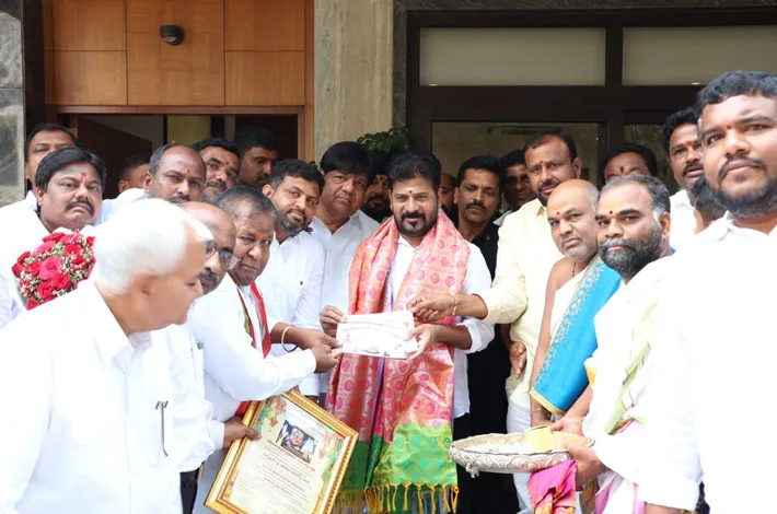 హైదరాబాద్: శివరాత్రి సందర్భంగా కీసర గుట్ట శ్రీ రామలింగేశ్వర స్వామి ఆలయం(Keesaragutta Sri Ramalingeswara Swamy Temple)లో జరిగే బ్రహ్మోత్సవాలకు రావాలని కోరుతూ టీపీసీసీ ఉపాధ్యక్షుడు, మేడ్చల్ అసెంబ్లీ నియోజకవర్గం కాంగ్రెస్ పార్టీ ఇంచార్జ్ తోటకూర వజ్రెష్ యాదవ్ అధ్వర్యంలో తెలంగాణ రాష్ట్ర ముఖ్యమంత్రి ఎనుముల రేవంత్ రెడ్డి(CM Anumula Revanth Reddy)ని శుక్రవారం నాడు ఆయన నివాసంలో కలిసి ఆహ్వానించారు. ముఖ్యమంత్రిని కలిసిన వారిలో కీసర గుట్ట చైర్మన్ తాటకం నారాయణ శర్మ, టెంపుల్ డైరెక్టర్లు ఉన్నారు.