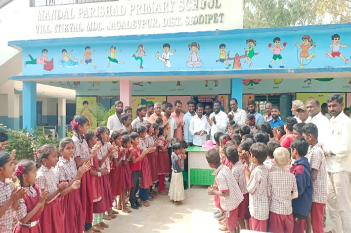 జగదేవపూర్,(విజయంక్రాంతి): జగదేవపూర్ మండల పరిధిలోని ఇటిక్యాల గ్రామ ప్రాథమిక పాఠశాలలో తెలంగాణ రాష్ట్ర సాధకులు మాజీ ముఖ్యమంత్రి గజ్వెల్ శాసన సభ్యులు కేసీఆర్ జన్మదిన వేడుకలు సర్పంచ్ దిన రాజలింగం, మాజీ సర్పంచ్ చంద్రశేఖర్ ఆధ్వర్యంలో కేక్ కట్ చేసి ఘనంగా నిర్వహించారు. జన్మదినం సందర్బంగా పాఠశాల విద్యార్థులు కూర్చోవడానికి కార్పెట్లు అందచేసారు. ఈ సందర్బంగా వారు మాట్లాడుతూ... తెలంగాణ రాష్ట్ర ప్రజల ఆశీర్వాదంతో నిండు నూరేళ్లు సంతోషంగా ఉండాలన్నారు. కార్యక్రమంలో వార్డు సభ్యులు స్వామి, యాదగిరి,నాయకులు నవీన్, అనిల్, నాగరాజు, శ్రీనివాస్, పర్వతాలు, ప్రవీణ్, హేమంత్, పార్టీ సీనియర్ నాయకులు రాజు తదితరులు పాల్గొన్నారు.
