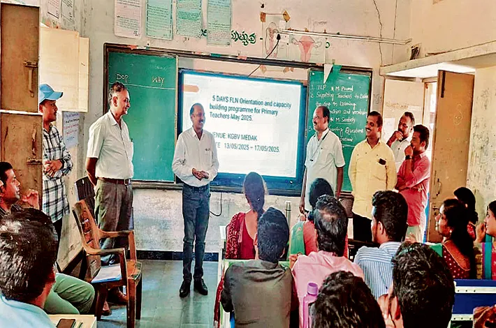 మెదక్, మే 16(విజయక్రాంతి): డైరెక్టర్ ఆఫ్ స్కూల్ ఎడ్యుకేషన్ జాయింట్ డైరెక్టర్ సర్వీసెస్ పి.మదన్ మోహన్ మెదక్ జిల్లాలో కేజీబీవీ మెదక్ నందు జరుగుతున్న ఉపాధ్యాయుల శిక్షణ కార్యక్రమానికి ఆకస్మికంగా పరిశీలించారు. ఈ సందర్భంగా శిక్షణ కార్యక్రమాల గురించి తెలుసుకున్నారు. జిల్లాలో జరుగుతున్న సమ్మర్ క్యాంప్స్ ఉల్లాస్ కార్యక్రమం, బడిబాట, ఉచిత యూనిఫామ్ లు, పుస్తకాల పంపిణీ, తల్లిదండ్రుల సమావేశం మొదలైన అంశములపై రివ్యూ నిర్వహించారు. కార్యక్రమంలో జిల్లా విద్యాశాఖ అధికారి డి.రాధా కిషన్, అకాడమిక్ మానిటరింగ్ అధికారి సుదర్శనమూర్తిఉన్నారు.