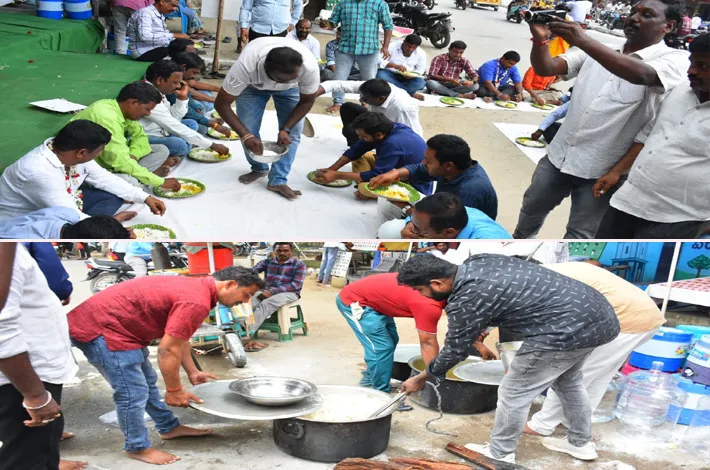 జగిత్యాల: తెలంగాణ రాష్ట్ర సాధన కోసం అలుపెరుగని పోరాటాల తరహాలో.. ఇళ్ల స్థలాల సాధన కోసం జగిత్యాల జర్నలిస్టులు పాలకుల మెడలు వంచేందుకు వినూత్న రీతిలో నిరసనలు చేస్తున్నారు. జిల్లా కేంద్రమైన జగిత్యాల జర్నలిస్టులు ఇళ్ల స్థలాల కోసం 12 రోజులుగా నిరవధిక నిరసనలు, దీక్షలు చేస్తూ బుధవారం వంటా వార్పు నిర్వహించారు. జర్నలిస్టులే కూరగాయలు తరిగి వంటలు చేసి రోడ్డుపైనే సహపంక్తి భోజనాలు చేశారు.