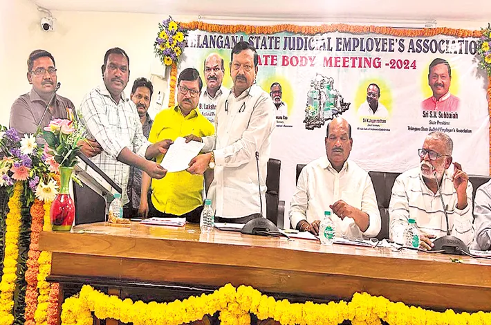 ఈ సందర్భంగా వారంతా.. ఉద్యోగులకు మెడికల్ రీయింబర్స్మెంట్ మంజూరు చేయాలని, పదోన్నతులు కల్పించాలని, జీపీఎఫ్, పదవీ విరమణ పొందిన వారికి వస్తువుల బిల్లులు మంజూరు చేయాలని, సుప్రీం కోర్టులో పెండింగ్లో ఉన్న న్యాయశాఖ ఉద్యోగుల కేసులను పర్యవేక్షించాలని, నూతనసంవత్సరం క్యాలెండర్, డైరీ నిర్వహణ తీర్మానా లను ఆమోదించారు. సమావేశంలో రాష్ట్ర అసోసియేట్ ప్రెసిడెంట్ ప్రేమ్కుమార్, ఆర్గనైజింగ్ సెక్రటరీ గౌరెడ్డి కోటేశ్వర్రెడ్డి, వివిధ జిల్లాల అధ్యక్ష, కార్యదర్శులు పాల్గొన్నారు.