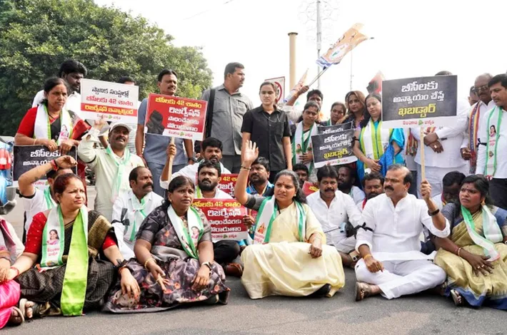 బీజేపీ వెంటనే రాజీనామా చేయాలని కవిత నినాదాలు చేశారు. బీజేపీ ఎంపీల(BJP MPs) త్యాగాలతోనే బీసీ బిల్లుకు మొదటి మెట్టు పడుతుందని కవిత అన్నారు. బీజేపీ ఎంపీలు బయటకు వచ్చి బిల్లుకు మద్దతు ఇవ్వకపోతే ఫ్యూచర్ లో వాళ్ల ఇళ్లముందు దర్నా, దిగ్బంధం చేస్తామని కవిత హెచ్చరించారు. బీసీ బిల్లు కోసం అనేక ఉద్యమాలు చేశామన్న కవిత(Kavitha) ఈ ఉద్యమాన్ని కోనసాగిస్తామని బీసీలకు విశ్వాశాన్ని కల్పిస్తున్నామని పేర్కొన్నారు. స్థానిక సంస్థల ఎన్నికల్లో బీసీలకు(BC Reservation) 42 శాతం కోటాపై హైకోర్టు స్టే విధించడాన్ని నిరసిస్తూ తెలంగాణలో శనివారం రాష్ట్రవ్యాప్త బంద్ ప్రారంభమైంది. అధికార కాంగ్రెస్తో సహా అన్ని రాజకీయ పార్టీలు ఆందోళనకు మద్దతు ఇచ్చాయి.