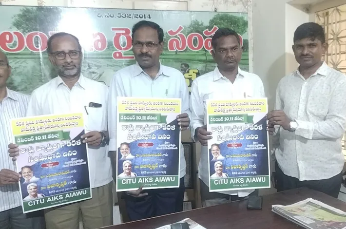 పోస్టర్ ఆవిష్కరణలో రైతు, సిఐటియు, వ్యకాస నాయకులు..