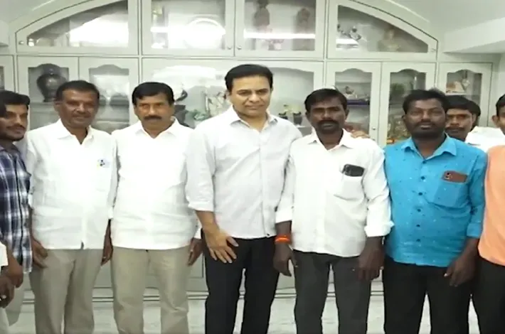 హైదరాబాద్: తెలంగాణ రాష్ట్రంలో జరిగిన స్థానిక సంస్థల ఎన్నికల్లో అధికార కాంగ్రెస్ పార్టీ అధికార దుర్వినియోగానికి, అరాచకాలకు ఎదురొడ్డి నిలిచి అద్భుత విజయం సాధించిన నూతన సర్పంచులకు బీఆర్ఎస్ వర్కింగ్ ప్రెసిడెంట్ కేటీఆర్(BRS Working President KTR) హృదయపూర్వక శుభాకాంక్షలు తెలిపారు. శనివారం హైదరాబాద్లోని నంది నగర్ నివాసంలో పలు జిల్లాల నుంచి తరలివచ్చిన నూతన సర్పంచులు కేటీఆర్ను మర్యాదపూర్వకంగా కలిశారు. వందలాదిగా తరలివచ్చిన సర్పంచులు, పార్టీ నేతలతో కేటీఆర్ నివాసం కోలాహలంగా మారింది. ఈ సందర్భంగా కేటీఆర్ మాట్లాడుతూ.. అధికార కాంగ్రెస్ పార్టీ పోలీసులను అడ్డుపెట్టుకుని బలప్రయోగం చేసినా, ఎన్ని అక్రమాలకు పాల్పడినా ప్రజలు మాత్రం బీఆర్ఎస్ వెంటే నిలిచారని అన్నారు. మొదటి దశ సర్పంచ్ ఎన్నికల్లో బీఆర్ఎస్ మద్దతుదారులు భారీగా గెలవడమే ఇందుకు నిదర్శనమని పేర్కొన్నారు. ప్రజాక్షేత్రంలో గెలిచి వచ్చిన ప్రతి ఒక్కరి పోరాట పటిమను కేటీఆర్ అభినందించారు.