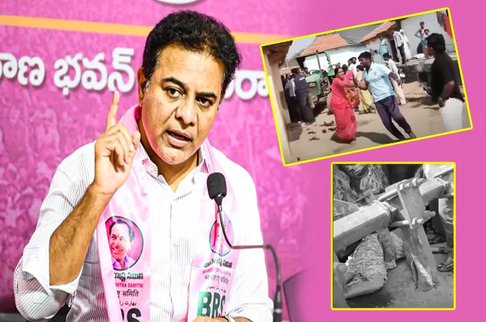 హైదరాబాద్: రాష్ట్రంలో కాంగ్రెస్ ప్రభుత్వం అధికారంలోకి వచ్చిన నాటి నుంచి శాంతిభద్రతలు క్షీణిస్తున్నాయని, ఆ పార్టీ నాయకుల గూండాగిరి రోజురోజుకూ శృతి మించుతోందని బీఆర్ఎస్ వర్కింగ్ ప్రెసిడెంట్ కేటీఆర్ తీవ్ర ఆగ్రహం వ్యక్తం చేశారు. కామారెడ్డి జిల్లా ఎల్లారెడ్డి నియోజకవర్గంలో జరిగిన అమానుష ఘటనపై ఆయన తీవ్రంగా స్పందించారు. సర్పంచ్ ఎన్నికల ఫలితాల అనంతరం కాంగ్రెస్ నేతలు భౌతిక దాడులకు తెగబడటం పిరికిపంద చర్య అని మండిపడ్డారు.