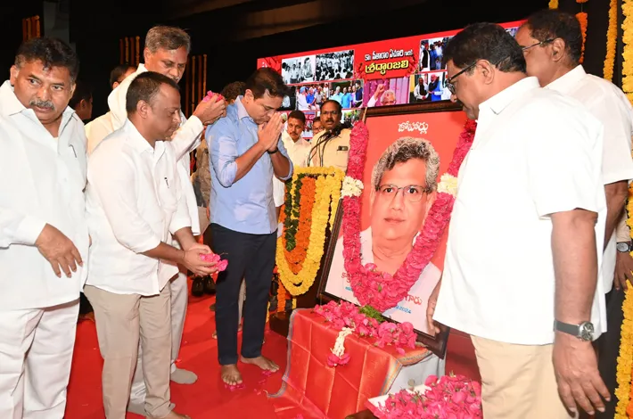 పదవులతో కీర్తి వస్తుందని కొందరు నేతలు అనుకుంటారని పేర్కొన్న కేటీఆర్ ప్రస్తుతం నేతలు పదవుల చుట్టూ పరిభ్రమిస్తున్నారని విమర్శించారు. పదవుల చుట్టూ కాకుండా సిద్ధాంతం చుట్టూ సీతారాం ఏచూరి పరిభ్రమించారని కొనియాడారు. నమ్మిన సిద్ధాంతం కోసం చివరివరకు సీతారం ఏచూరి నిలబడ్డారని తెలిపారు. సీపీఎం తెలంగాణ శాఖ ఆధ్వర్యంలో నిర్వహించిన ఈ కార్యక్రమంలో బీవీ రాఘవులు, తమ్మినేని వీరభద్రం, ఎమ్మెల్సీ కోదండరాం, బీఆర్ఎస్ నాయకులు, తదితర నేతలు పాల్గొన్నారు.