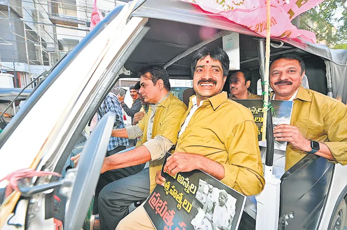 అయితే బుధవారం ఆటో డ్రైవర్ల వేషధారణలో వచ్చి వారి సమస్యలపై చర్చించాలని డిమాండ్ చేశారు. కాగా బీఆర్ఎస్ ఎమ్మెల్యేలు అసెంబ్లీకి ఆటోల్లోనే రావడం విశేషం. మాజీ మంత్రి కేటీఆర్ కొందరు ఎమ్మెల్యేలను ఎక్కించుకుని స్వయంగా తానే ఆటో నడుపుతూ అసెంబ్లీకి వచ్చారు. ఇచ్చిన హామీ మేరకు ప్రభుత్వం ఆటో కార్మికులకు అండగా నిలవాలని.. 93 మంది ఆటో డ్రైవర్ల ఆత్మహత్యలకు ప్రభుత్వమే కారణమని కేటీఆర్ ఆరోపించారు.