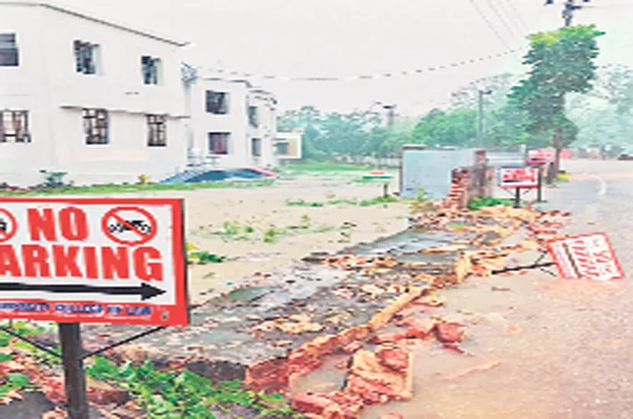 కాకతీయ విశ్వవిద్యాలయం, అక్టోబర్ 29 (విజయక్రాంతి): బంగాళాఖాతంలో ఏర్పడిన అల్పపీడనం.. మొంథా తుఫాను ప్రభావంతో రాష్ట్రంలోని పలు ప్రాంతాల్లో ఉదయం నుంచి 150-180 మి.మీ.ల భారీ వర్షాలు నమోదయ్యాయి. హన్మకొండలోని కేయూ, న్యాయ కళాశాల ప్రహరీ గోడ సర్క్యూట్ హౌజ్ దారి వైపు నేలమట్టమయింది, ఎలాంటి ప్రమాదం జరుగలేదు.