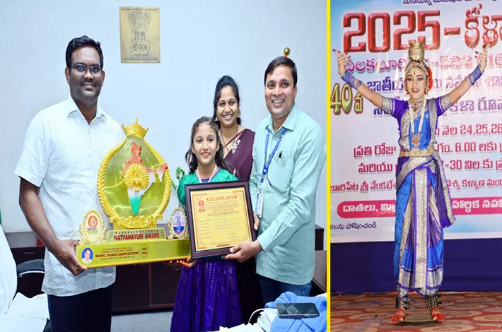 నిజామాబాద్: ఆంధ్రప్రదేశ్ పల్నాడు జిల్లా చిలకలూరిపేట కళా నిలయంలో 40 వ జాతీయ స్థాయి నవరస శాస్త్రీయ సంగీత నాట్య కళారూపాల పోటీలు జరిగాయి. కూచిపూడి నృత్య విభాగంలో ఈ పోటీలో 10 సం. వయసు లోపు చిన్నారులు పాల్గొన్నారు. ఈ నృత్య పోటీలో ఇందూరి జిల్లా వాసి అయిన తేలి విభ శ్రీ "తరంగం" నృత్య ప్రదర్శన చేసి "ప్రత్యేక జ్యూరీ నాట్య మయూరి అవార్డ్ " సొంతం చేసుకుంది. ఈ చిన్నారి నగరంలోని శ్రీ కరణం శ్రీనివాస్ గారి నాట్య తరంగిణి కళాశాలలో ప్రత్యేక నృత్యం అభ్యసించింది.