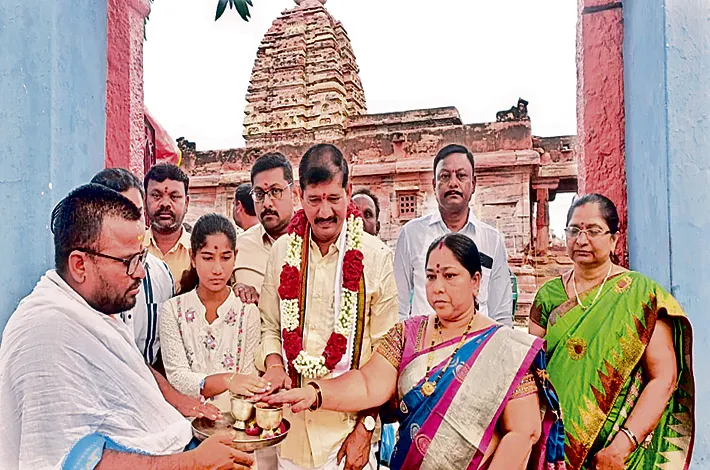 అలంపూర్, నవంబర్ 5: ప్రముఖ ఐదవ శక్తిపీఠం అలంపూర్ శ్రీ జోగులాంబ బాల బ్రహ్మేశ్వర స్వామి ఆలయాలను కర్నూలు ఎంపీ బస్తిపాటి నాగరాజు దర్శించుకున్నారు. ముందుగా వీరికి ఆలయ అధికారులు ఆలయ మర్యాదలతో సాదరంగా స్వాగతం పలికారు. అనంతరం బాల బ్రహ్మేశ్వర స్వామి వార్లకు అభిషేకాలు అమ్మవారికి కుంకుమార్చనలు వంటి ప్రత్యేక పూజలు నిర్వహించారు.అనంతరం ఎంపీని శేష వస్త్రంతో సత్కరించి వేద ఆశీర్వచనం అందించి తీర్థ ప్రసాదాలు అందజేశారు.