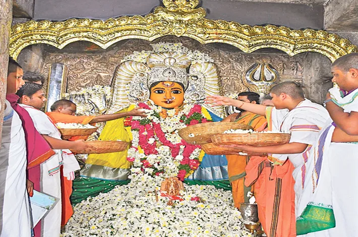 భద్రకాళి అమ్మవారికి చామంతులతో లక్ష పుష్పాభిషేకం