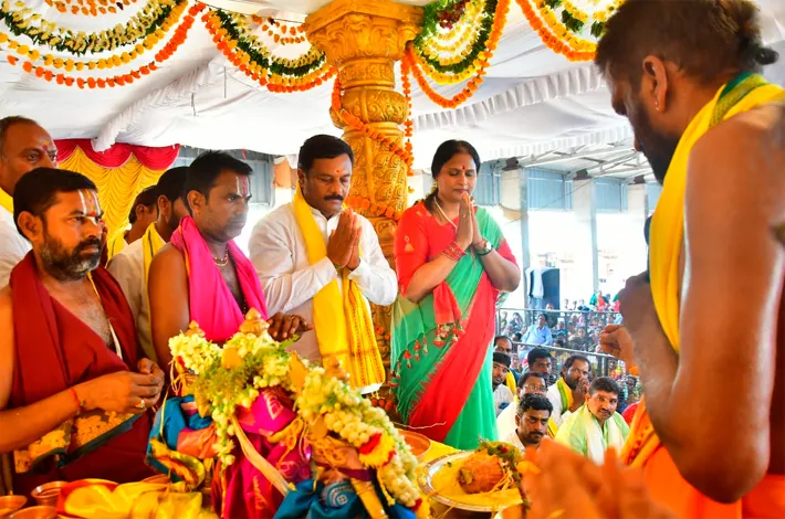 ముందుగా ఆలయ అర్చకులు పూర్ణ కుంభంతో స్వాగతం పలికారు. ఎమ్మెల్యే దం పతులు స్వామి వారికి పట్టు వస్త్రాలు సమర్పించి, కల్యాణ మహోత్సవంలో పాల్గొన్నా రు. రాష్ర్ట ప్రజలంతా ఆయురారోగ్యాలతో, సుఖశాంతులతో ఉండాలని, రైతులకు మే లు జరగాలని, యుద్ధ భూమిలో గల భారత సైనికులకు ఆత్మ స్థుర్యైం, విజయం వర్ధిల్లాలని ఆకాంక్షించారు.