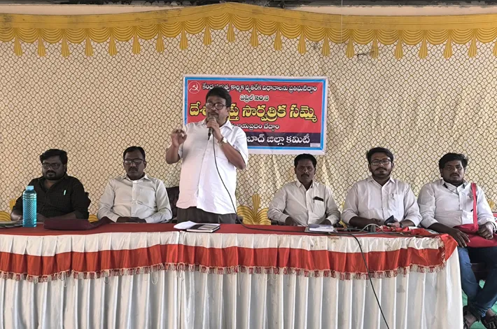 దేశ కార్మిక వర్గం సాధించుకున్న హక్కులు చట్టాలను నిర్వీర్యం చేస్తూ కార్మిక ద్రోహానికి పాల్పడిండిందని పేర్కొన్నారు. మరోవైపు ఏ ఒక్క ప్రభుత్వ రంగ సంస్థను ప్రారంభించకపోగా ఉన్న ప్రభుత్వ రంగ సంస్థలన్నింటిలో వాటాలను విక్రయిస్తూ కార్పొరేటీకరణ ప్రైవేటీకరణ చేస్తున్నదని మండిపడ్డారు. సమావేశంలో రాష్ట్ర కార్యదర్శి కూరపాటి రమేష్, జిల్లా అధ్యక్ష కార్యదర్శులు బొజ్జ ఆశన్న, అన్నమొల్ల కిరణ్, ఉపాధ్యక్షులు మల్లేష్, లింగాల చిన్నన్న, అగ్గిమల్ల స్వామి, నవీన్ కుమార్ తదితరులు పాల్గొన్నారు.